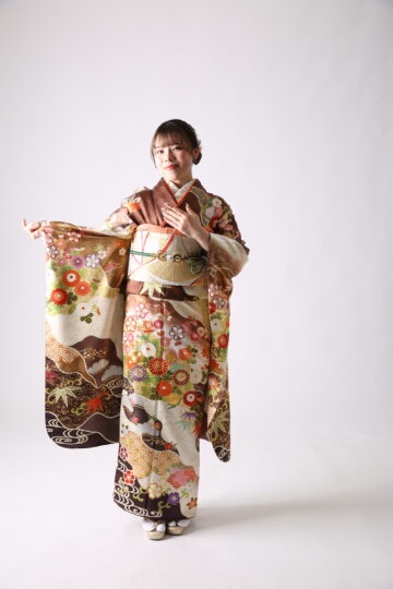 こちらのお嬢様は茶色地の吉澤織物の振袖を選びました。