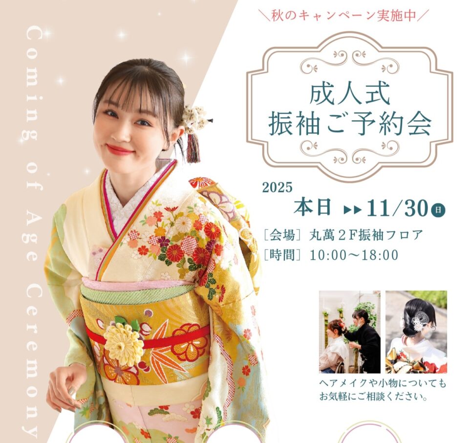 丸萬では、『成人式振袖ご予約会』を以下の期間に開催いたします。 期間中にご成約...